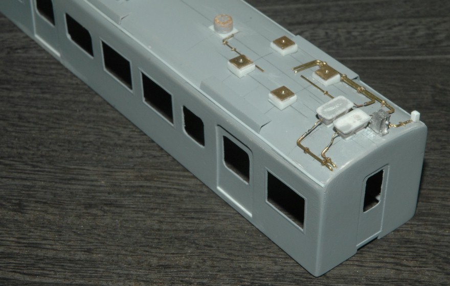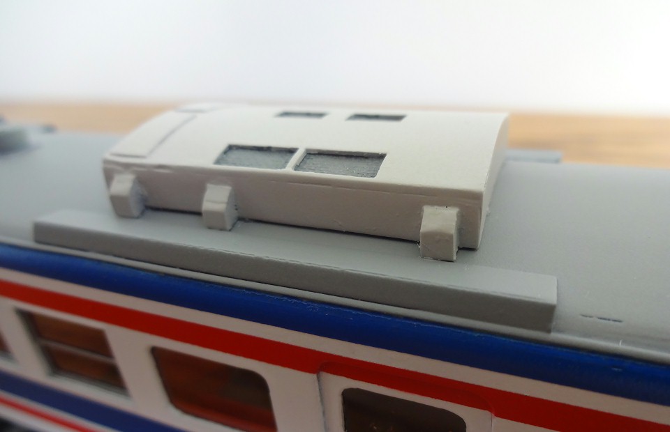 屋上機器、配管などを取り付けて、車体の生地完成です